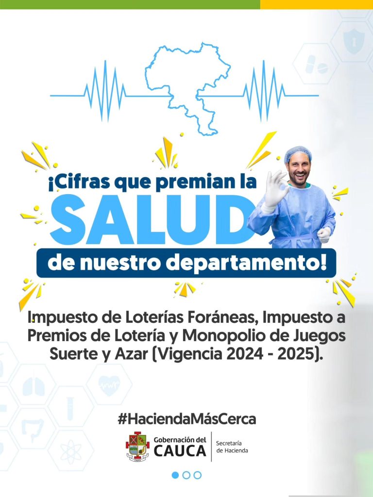 📢 Durante el 2025, el recaudo por el Impuesto de Loterías Foráneas, Impuesto a Premios de Lotería y Monopolio de Juegos de Suerte y Azar, creció un 6%, alcanzando los $18.165 millones de pesos, recursos que van directo a la salud de los caucanos! 🏥🩺