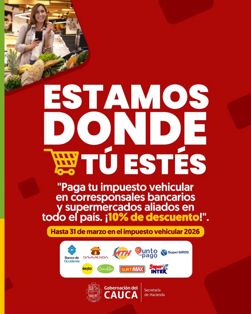 👨💻 Descarga tu PIN desde www.rentascauca.gov.co y paga en cualquiera de los corresponsales bancarios o supermercados aliados con presencia en todo el país.